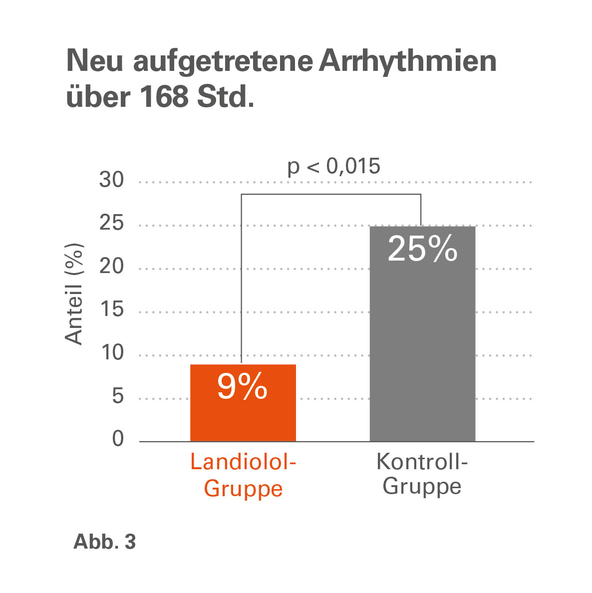168 Stunden nach Randomisierung in der Landiolol-Gruppe (9 % vs. 25 %) (Abb.