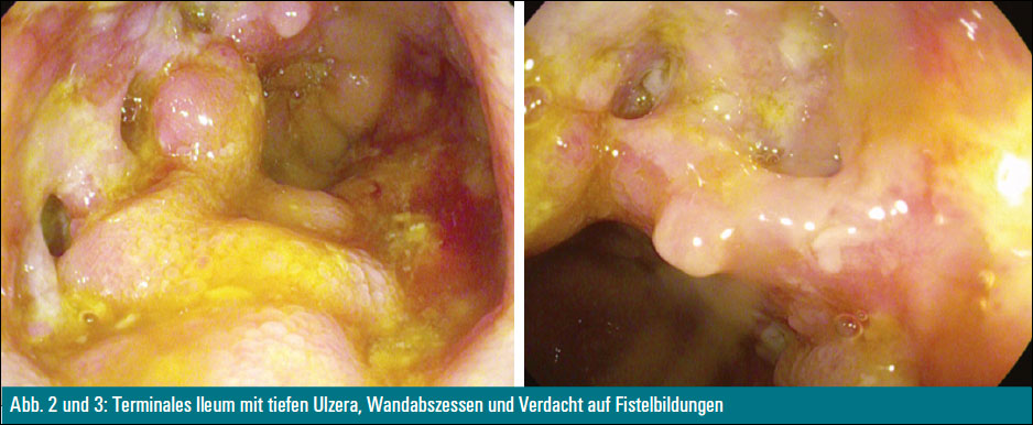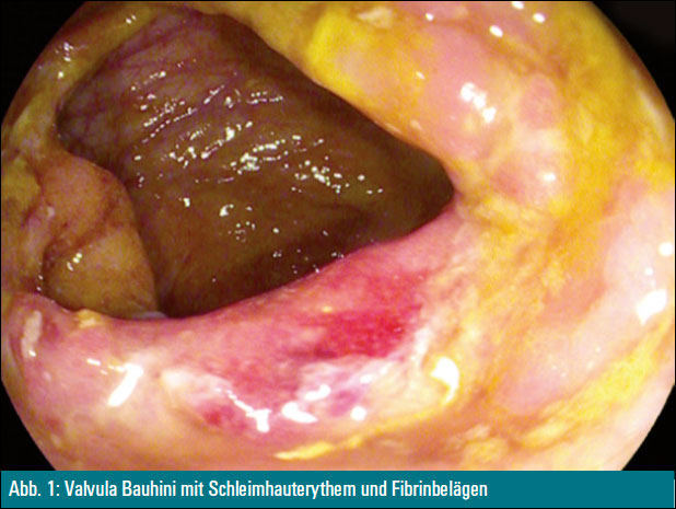 Die Coloskopie zeigte eine massive Entzündung mit tiefen Ulzerationen und den Verdacht auf Fistelbildungen im terminalen Ileum und an der Valvula Bauhini. Weder in der Histologie noch in der PCR konnte Mycobacterium Tuberculosis nachgewiesen werden. Erst die Kultur erbrachte schließlich den positiven Nachweis von Mycobacterium tuberculosis, worauf der Patient in ein spezialisiertes Zentrum zur weiteren Therapie transferiert wurde.