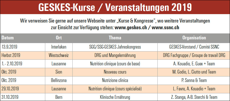 Das elfte Jahr des Zertifikatskurses Klinische Ernährung (ZKE) „Certificate of Advanced Studies in Clinical Nutrition“ (CASCN) der Medizinischen Fakultät der Universität Bern baut auf den Erfolgen der bisherigen Kurse und Fortbildungen der Schweizerischen Gesellschaft für Klinische Ernährung (GESKES) auf.