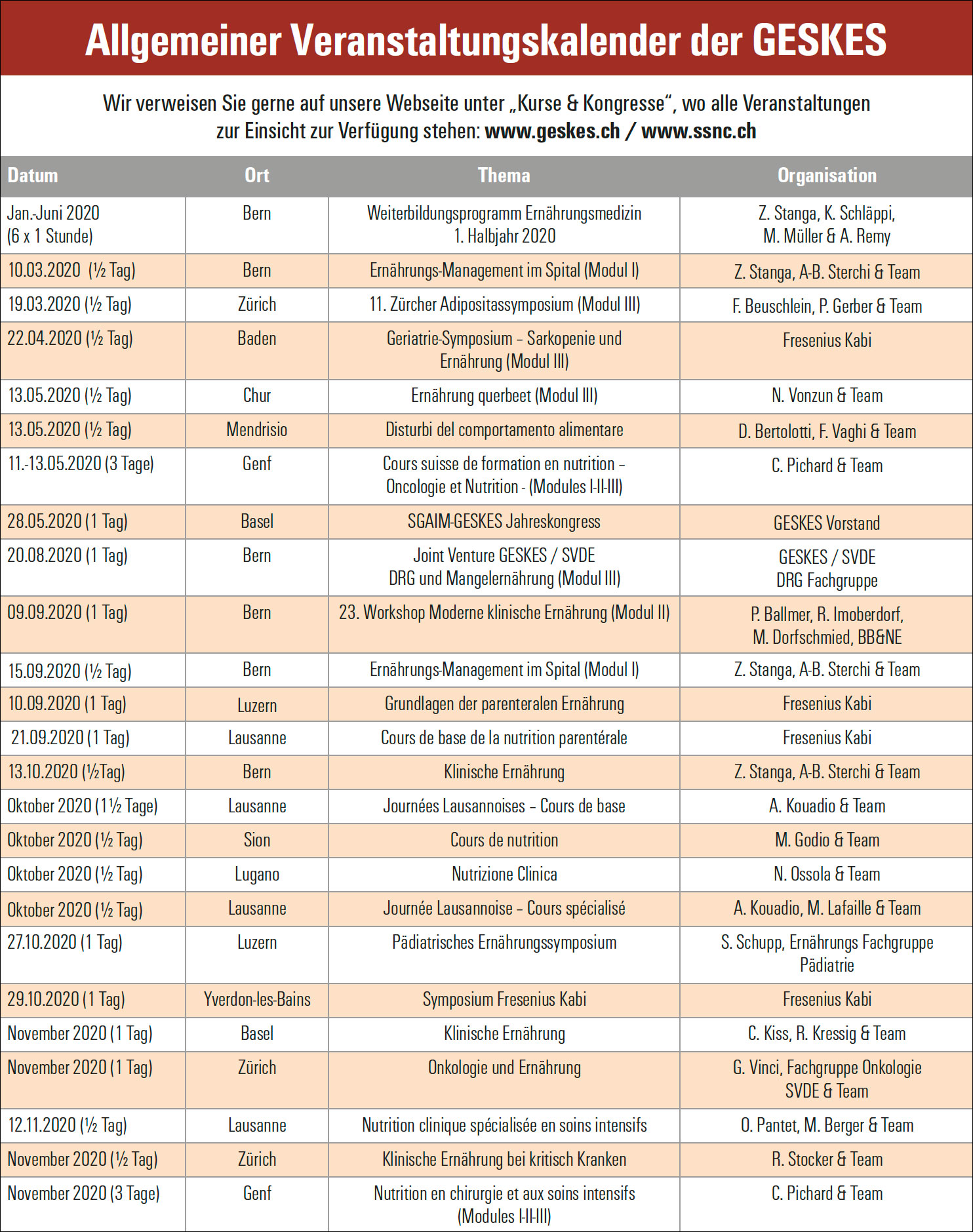 Für das Jahr 2020 konnten bereits 25 Kurstage geplant werden. Die Liste wird laufend aktualisiert.