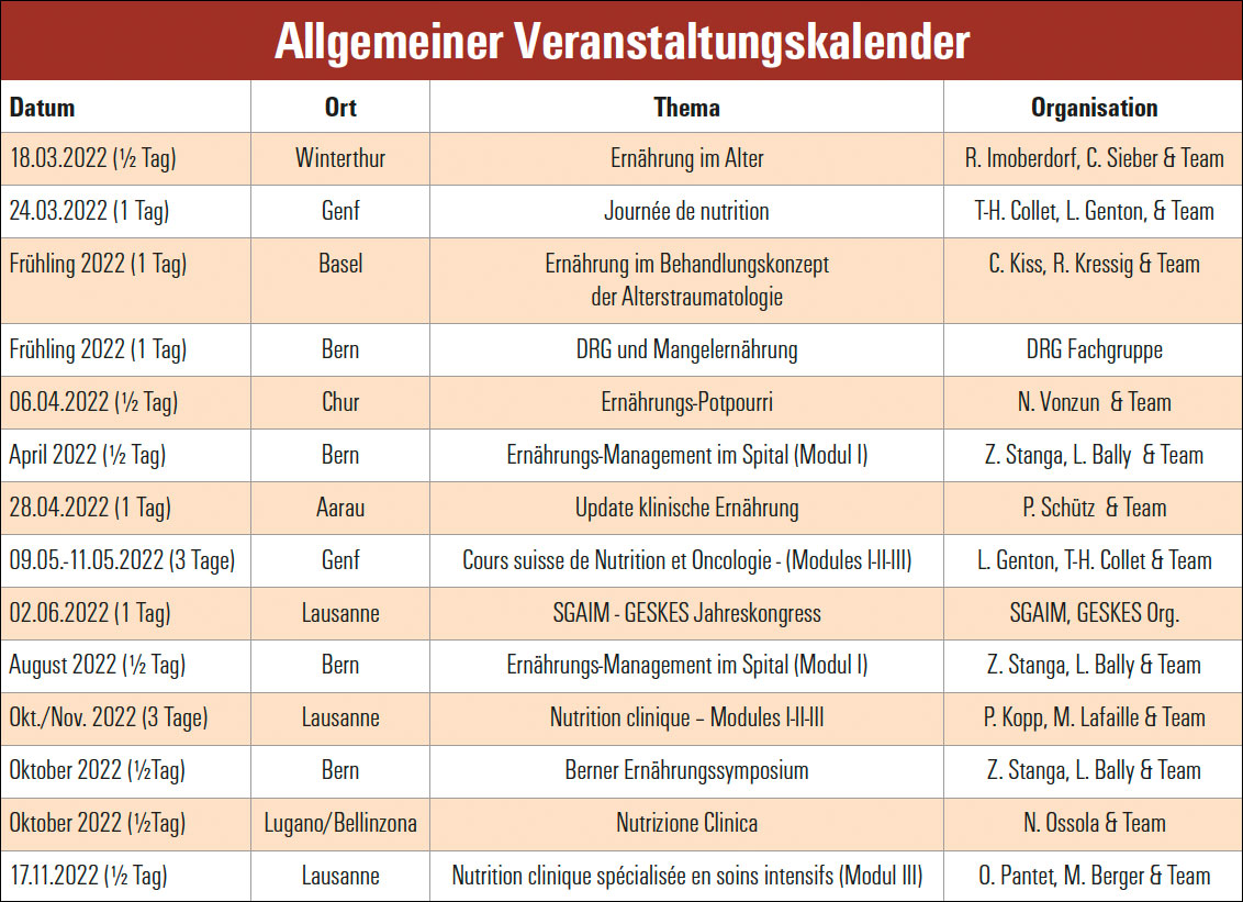 Gerne möchten wir Sie auf die Veranstaltungen der GESKES aufmerksam machen und verweisen Sie gerne auf unsere Webseite unter „Kurse & Kongresse“, wo alle Veranstaltungen zur Einsicht zur Verfügung stehen: www.geskes.ch / www.ssnc.ch